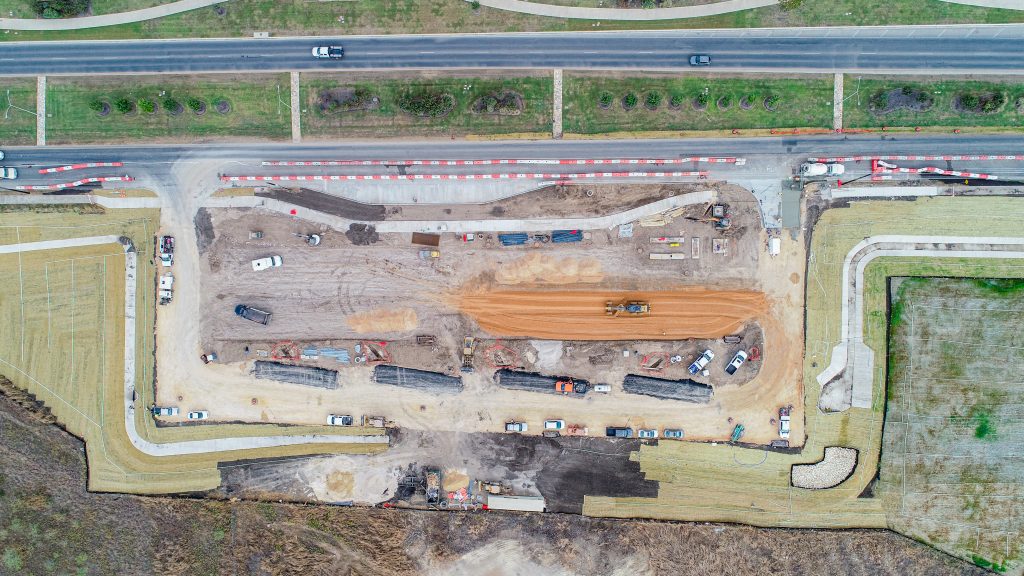 Construction is actively progressing on our next major electric bus charging hub at 9315 Old McNeil Rd. This project is forecast for completion in Winter 2026, supporting long‑term fleet electrification. The facility’s planned components will include: