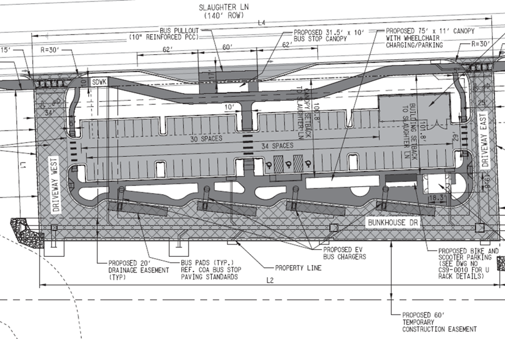 The CapMetro Goodnight Ranch Park & Ride will end the line on Rapid 800 and include four bus bays, four charging stations and 64 customer parking spaces.
